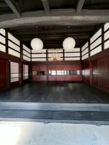 倉庫の2階の壁の節穴の中にスズメバチが巣を作った。